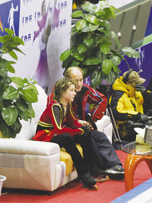 紅黑的緊身衣鑲著亮亮的水鉆,賽場上,小米沙充滿張力的表演酷似“俄羅斯冰上王子”普魯申科。“普魯申科?他是我的偶像,不過也是我父母的好朋友。他還親自教我呢!备昝咨车靡獾卣f道。