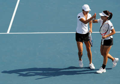 當(dāng)衛(wèi)冕冠軍小威不敵揚(yáng)科維奇止步女單八強(qiáng)時(shí),看臺(tái)上劃著十字架祈禱的小威母親或許就意識(shí)到這天并不屬于威廉姆斯家族。昨天,抱著“拼男雙”的想法,鄭潔/晏紫演繹了一場(chǎng)精彩的逆轉(zhuǎn)之戰(zhàn),她們以3-6/6-4/6-2戰(zhàn)勝威廉姆斯姐妹連續(xù)三年晉級(jí)四強(qiáng)。