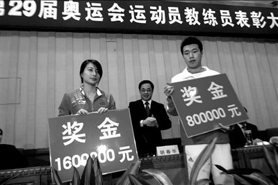 昨天,河北省政府表彰在北京奧運(yùn)會上取得優(yōu)異成績的河北運(yùn)動員及其教練。獲得跳水3米板單人項目和女子3米板雙人項目兩枚金牌的運(yùn)動員郭晶晶(左)及其教練李芳、獲得射擊男子10米氣手槍金牌的運(yùn)動員龐偉(右)及其教練員張勝閣被授予“河北省優(yōu)秀體育工作者”榮譽(yù)稱號,同時受到經(jīng)濟(jì)獎勵。