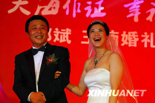 9月27日,王楠與丈夫郭斌在婚禮現(xiàn)場。新華社發(fā)(初陽 攝)