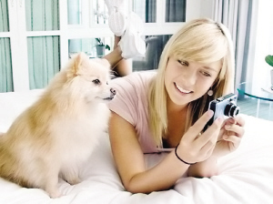 莎娃攜愛(ài)犬拍新廣告 美少女著吊帶回歸清純(圖)