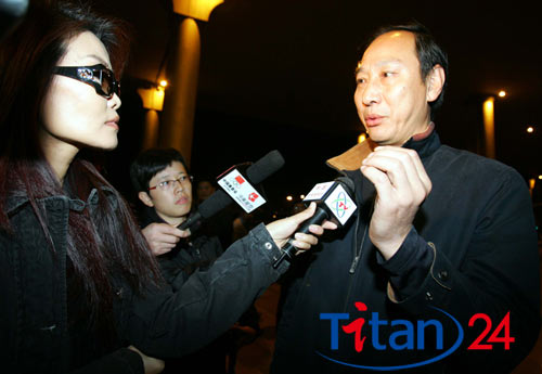 劉翔結(jié)束美國西行回國,孫海平在機(jī)場(chǎng)接受采訪。