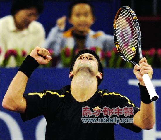 但德約科維奇還是掩飾不住第一場大師杯勝利給自己帶來的快樂。結(jié)束比賽后,他向掛滿塞爾維亞國旗一側(cè)的看臺不停地?fù)]手道謝,感言是球迷的吶喊聲給了自己很大動力。接著他還特別用中文向另外一側(cè)的觀眾席說了聲“謝謝”,認(rèn)為自己的開局“很好彩”,開門紅更是一個“好兆頭”。退場時,不斷有靠近場地的觀眾席上的球迷向小德索要禮物,球拍明顯是球迷們的主要獵物,但德約科維奇只肯摘下兩只護(hù)腕相贈,甚至,連喝剩下的半瓶子水也不忘帶走,顯示出與其年紀(jì)頗不相仿的嚴(yán)謹(jǐn)。