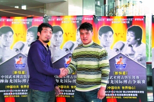 日前,柳海龍國(guó)際搏擊爭(zhēng)霸賽的兩位領(lǐng)銜主打柳海龍與伊賀弘治同時(shí)來(lái)到佛山。為參加1月10日的“海弘大戰(zhàn)”進(jìn)行賽前最后的準(zhǔn)備。兩位選手在賽事主辦方的安排下,進(jìn)行了初次見(jiàn)面。