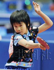 中新網(wǎng)1月15日電 據(jù)共同社報道,14日在東京體育館舉行的全日本乒乓球錦標賽中,首次參加青少年組比賽的山梨縣中央市田富北小學二年級學生平野美宇(8歲)在女子單打比賽中獲得一勝,打破了福原愛在小學四年級時創(chuàng)下的參賽選手及獲勝選手最低年齡記錄,平野笑著說:“感到非常高興!