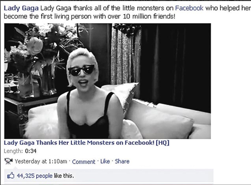 中新網(wǎng)7月6日電 據(jù)香港“文匯報”消息,Lady Gaga人氣爆燈絕對不是空話。與不少明星一樣,Gaga也有利用社交網(wǎng)站與粉絲互動。據(jù)悉,Lady Gaga在2月時已有500萬名粉絲關(guān)注,當(dāng)時還比性感女星梅根·?怂股贁(shù)十萬,也比美國現(xiàn)任總統(tǒng)奧巴馬的700萬名支持者要少。但Lady Gaga果然名不虛傳,以平均每天14萬人關(guān)注的速度,至上周已錄得1千萬的紀(jì)錄,比一直領(lǐng)先她的總統(tǒng)奧巴馬還要超前約100萬票。獲得這一喜訊后,Gaga在另一社交網(wǎng)站寫道︰“多謝那么多小魔怪在Facebook追隨我。我有一千萬個互相緊扣的朋友了。”