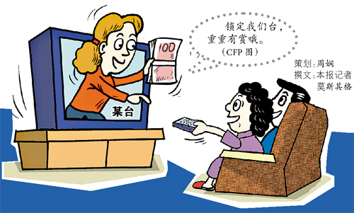 人家說話還真算數(shù)。一個月后,我家就收到了他們寄來的茶葉。逢年過節(jié),還有禮品,東西不算貴重,但一個月一寄,也不易。后來,對方來電話要求我們每天晚上看1個半小時他們臺的電視劇,我就有些不大開心了。再后來,他們就不寄東西改送錢上門了,每個月200元,不少,人又客氣。弄得我們也有點不好意思了。”