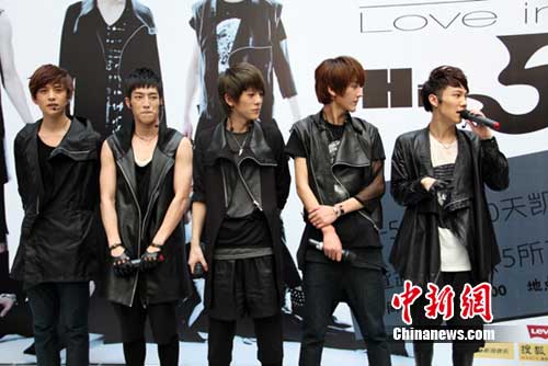 中新網(wǎng)7月9日電 剛從臺(tái)灣發(fā)展100天歸來的內(nèi)地人氣偶像團(tuán)體HIT-5昨日在北京舉行了首張專輯《5所不愛》的發(fā)布會(huì),國(guó)際知名品牌levis在現(xiàn)場(chǎng)透露,HIT-5將在不久后代言這個(gè)品牌,取代陳冠希。