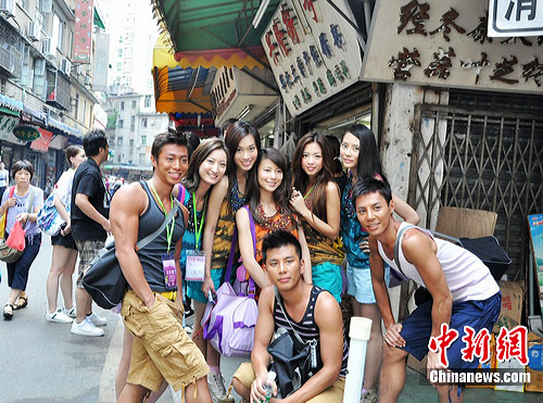 中新網(wǎng)韶關(guān)7月19日電(記者 李凌)7月19日上午,在廣東韶關(guān)進(jìn)行外景拍攝和采風(fēng)的2010年準(zhǔn)港姐、港男在游覽市區(qū)時,受到當(dāng)?shù)厥忻駠^。陪同前往的08年港姐高海寧更是備受矚目,成市民眼中最靚佳麗。
