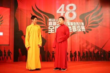 而記者在8月8日舉辦的移動MM之《喜劇之王2》星呢選秀大賽48強(qiáng)晉級賽華北站的比賽現(xiàn)場,意外的發(fā)現(xiàn)參賽的17位選手中17號的黃鶴飛竟然也是來自德云社的弟子。比賽中黃鶴飛的表演基本上都以相聲為主,只是比賽最后一個環(huán)節(jié)黃鶴飛以醒目的紅褲衩外穿的超人造型相聲表演讓評委很是不解。