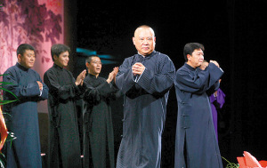 對(duì)于眼下的郭德綱來(lái)說(shuō),做慈善行為可能是唯一表達(dá)自己情感的方式了。他告訴記者:“這么多年來(lái),不管是玉樹還是汶川、西南大旱……我本人和演員都會(huì)表達(dá)自己的一份心力。這次演出,我們湊個(gè)20萬(wàn)元,雖然不能管太大用處,算是盡份心意吧!标P(guān)于未來(lái)的打算,郭德綱只表示:“能做的我們已經(jīng)做了,大家能看到,我們最重要的就是做好自己的業(yè)務(wù)。最近難得安靜,我們?cè)诜此肌⒛е,就要繼續(xù)準(zhǔn)備節(jié)目回報(bào)大家!惫戮V透露:“這次巡演有我收徒弟的專場(chǎng),包括謙哥徒弟謝師,也包括新作品的專場(chǎng),以及翻新的傳統(tǒng)節(jié)目和以前的老作品。謙哥還有幾個(gè)逗哏的節(jié)目,會(huì)讓大伙看看新鮮。因?yàn)閺男W(xué)相聲,都是‘也站桌子里面也站桌子外面’。但謙哥這些年凈捧哏了沒(méi)怎么逗過(guò)哏。我們最新的安排,準(zhǔn)備策劃讓于老師能站‘在桌子外面’說(shuō)幾場(chǎng)。”