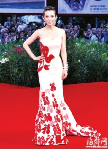 清冷了多日的威尼斯紅毯秀終于因為《狄仁杰之通天帝國》而迅速升溫,影片的主創(chuàng)也令華語電影人氣勢十足。此前,李冰冰要在威尼斯紅毯上穿“青花瓷”禮服的消息被傳得沸沸揚揚,她和范冰冰的“碰瓷”還一度成為熱炒話題。但在昨天的紅地毯上,李冰冰并沒有選擇提前曝光的“青花瓷”,而是選了另一套“百福圖”的戰(zhàn)袍。