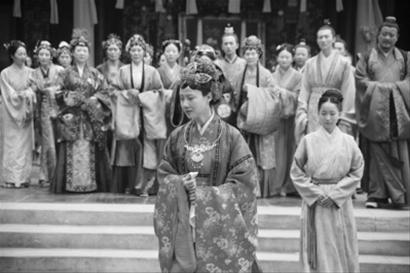 新版《紅樓夢》中還有一個大場面——“可卿喪禮”,規(guī)格絲毫不次于“元妃省親”的花費(fèi),單是停靈就用了49天,“寧國府街上一條白漫漫人來人往,花簇簇官去官來”,加上數(shù)十位僧道日夜超度,薛蟠送來的、無人敢擅用的檣木棺,還有瑞珠殉葬,秦可卿的喪禮一時間有了親王級別的排場,引得賈政等人連連搖頭。而這場戲拍攝得也極為仔細(xì),為符合原著基本精神,遵照當(dāng)時的禮儀規(guī)矩,賈府一應(yīng)女眷均處在一個白幃子里。