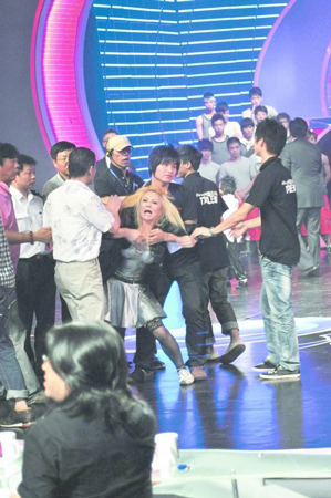 湖南衛(wèi)視的《快樂男聲》剛剛落下帷幕,東方衛(wèi)視的《中國達(dá)人秀》即將迎來高潮。不過,在前日舉行的《中國達(dá)人秀》首場半決賽中卻發(fā)生了意外狀況,被淘汰的選手陳靜大鬧現(xiàn)場,最終周立波動(dòng)用了自己的保鏢才將她和她的丈夫請(qǐng)出舞臺(tái)。而一旁的評(píng)委高曉松說了一句“上海男人慫”,也惹得眾多網(wǎng)友不滿。昨日,這段從節(jié)目中刪除的視頻流傳到了網(wǎng)上,成為網(wǎng)友熱議的焦點(diǎn)。對(duì)于選手的偏激行為,昨日《中國達(dá)人秀》的宣傳總監(jiān)陸偉解釋說:“陳靜未能晉級(jí)的失望心情我們可以理解,但她在現(xiàn)場選擇這樣的方式來發(fā)泄,顯得有些過激,因此在節(jié)目最后公開播出的版本中,刪去了這段實(shí)況!