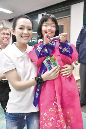 圖為章子怡抱著智障兒童。