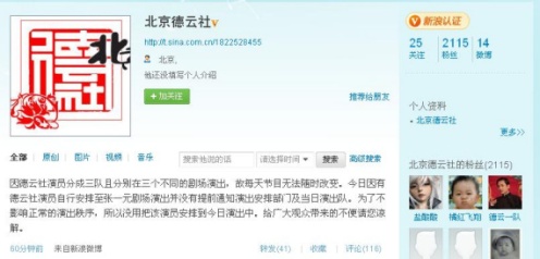 德云社在微博指出:“因德云社演員分成三隊(duì)且分別在三個(gè)不同的劇場演出,故每天節(jié)目無法隨時(shí)改變。今日因有德云社演員自行安排至張一元?jiǎng)鲅莩霾]有提前通知演出安排部門及當(dāng)日演出隊(duì)。為了不影響正常的演出秩序,所以沒用把該演員安排到今日演出中。”