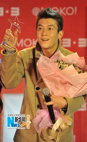 陳冠希10月28日在北京參加商業(yè)活動(dòng),他獲贈(zèng)大捧鮮花人氣依舊居高不下,現(xiàn)場(chǎng)獻(xiàn)唱時(shí)他額頭冒青筋,拼命哄歌迷挽救人氣。還不忘大談與女友戀情自我炒作,并稱自己從未說出過退出或者離開娛樂圈。
