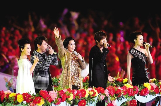 此次亮相開幕式,韋唯和譚晶、陶喆、金賢重、容祖兒等五人共同演唱《日出東方》。已是前輩的韋唯梳著時(shí)髦的發(fā)型,毫不顯老。