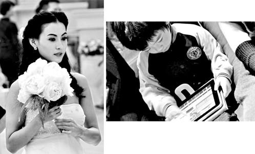 當(dāng)天拍攝的是《最強(qiáng)囍事》中的重頭戲:搶親。杜汶澤好不容易將張柏芝追到手,哪知就在婚禮即將舉行的一刻,對張柏芝情深意切的古天樂突然出現(xiàn)在現(xiàn)場,不由分說就要將張柏芝搶走。一見身披婚紗的張柏芝,就不由令人想起她和謝霆鋒的幸福婚姻生活。提起謝霆鋒,張柏芝立刻就笑了,甜蜜表示:“霆鋒來探班過,但因為有戲在身,才呆了15分鐘就走了。”雖然只有15分鐘,但對于張柏芝來說,已經(jīng)很是滿足。張柏芝坦言,那么多年沒有拍戲,剛剛站到鏡頭前的一刻,確實有些不習(xí)慣和緊張,還好有老公在身邊支持自己:“他是很靦腆的人,在片場話雖然不多,已經(jīng)是很關(guān)心的舉動了,我很開心。”