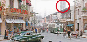 幕后:為了完整重現(xiàn)《色,戒》中30年代場景,李安不惜花了3000萬人民幣在上海搭建了一條完整的“南京西路”,道路兩旁盡是2、3層樓的建筑,共蓋了大小180家商店。據(jù)悉,原著小說中,曾出現(xiàn)店家的陳年照片,李安就根據(jù)這些,再對照真實(shí)史料,仔細(xì)考究搭建,就連櫥窗內(nèi)的商品也以真品放置。李安對美工的要求幾乎到了苛刻的地步,連一只杯子都要和當(dāng)年一模一樣。但百密一疏,背景中的高樓影子,本應(yīng)該在后期制作中用電腦刪去,卻疏忽了。