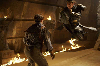 在上海拍完1946年的新年、“復(fù)活”的龍帝追殺女巫楊紫瓊的重頭戲后,《木乃伊3》近日又轉(zhuǎn)景到了橫店秦王宮。據(jù)導(dǎo)演羅伯·科恩在博客上介紹,橫店將回頭拍攝2000年前,龍帝與女巫之間的感情糾葛。因?yàn)閺?qiáng)娶女巫不成,龍帝一怒之下屠城泄憤。據(jù)介紹,這場(chǎng)戲在整部電影中最終只有幾分鐘的鏡頭,不過,投資1.7億美元的《木乃伊3》劇組,還是認(rèn)真地花幾天時(shí)間在橫店進(jìn)行實(shí)地拍攝。而昨天,李連杰和楊紫瓊已經(jīng)紛紛進(jìn)組趕拍。按照計(jì)劃,在結(jié)束橫店的拍攝后,《木乃伊3》劇組還將回到上海。本月28日,該片將結(jié)束在內(nèi)地的全部取景。