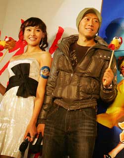 毛帽、長筒靴和厚厚羽絨服,昨天武裝嚴(yán)實(shí)的夏雨專程從另一劇組片場趕來,因?yàn)榛顒右呀?jīng)快開始了,夏雨一到現(xiàn)場便投入到了活動中,根本沒有時間“裝扮”一番,這與臺上只穿著夏裝短裙的另一位主演唐嫣顯得格格不入。起初在主持人的調(diào)侃下,夏雨顯得有些尷尬,10分鐘后脫去羽絨服的夏雨情緒才好轉(zhuǎn)起來,主動參與到游戲環(huán)節(jié)中。