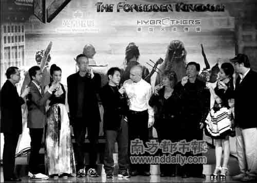 現(xiàn)場有記者問,電影原本的噱頭是找成龍和李連杰來演一部非武打片,李連杰說:“我們兩人不打?那記者和觀眾可能會打起來,會說騙人,買票進來不看這兩個人打,難道真的看這兩個人談情說愛嗎?”