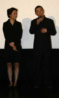 蔣雯麗和顧長衛(wèi)在昨日蘇州的首映禮上