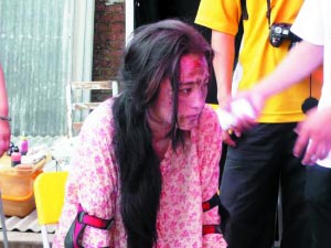 蔣勤勤參演賑災(zāi)公益短片 滿臉血污(圖)