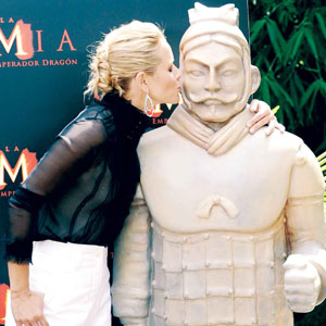 由李連杰、楊紫瓊等眾多華人影星參演的《木乃伊3:龍帝之墓》將于下周四(31日)在我國香港地區(qū)、新加坡和韓國上映,但內(nèi)地觀眾則要到8月底才能有望一睹“龍帝”模樣。不過這并不影響該片在全球刮起一股“中國風”。本周一,《木乃伊3》主演布蘭登·弗萊澤、瑪麗亞·貝羅與兵馬俑出現(xiàn)在西班牙馬德里時,再度燃起人們對兵馬俑的好奇。