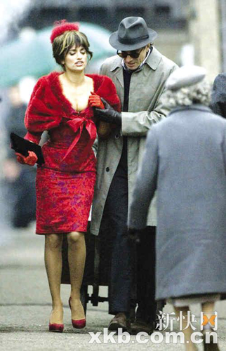10月27日,佩內(nèi)洛普·克魯茲(Penelope Cruz)一身紅色皮毛艷裝爆乳拍攝新片《9》(Nine)。該片由羅伯·馬歇爾執(zhí)導,是一部由同名音樂劇改編的歌舞片。當天在片場出現(xiàn)的還有男主角丹尼爾·戴·劉易斯(Daniel Day Lewis),他和佩內(nèi)洛普·克魯茲上演了親密的擁抱戲。