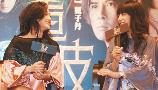 中新網(wǎng)12月5日電 周迅、趙薇昨天在臺(tái)灣出席“畫皮”記者會(huì),一個(gè)嫵媚、一個(gè)端莊,頗呼應(yīng)片中她們分別是狐妖及賢妻的角色。在片中搶男人互不相讓,現(xiàn)實(shí)中她們不屑橫刀奪愛。趙薇說(shuō):“要用搶的愛,絕不是你的”,周迅說(shuō):“我絕對(duì)肯讓”。