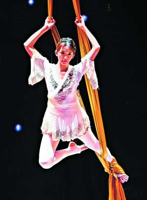 前晚她身負(fù)金馬獎(jiǎng)開(kāi)場(chǎng)重任,一出場(chǎng)唯美的火紅古裝令人驚艷。這是她首度在公開(kāi)場(chǎng)合的獨(dú)唱表演,但娃娃音唱腔其實(shí)是事前配唱的成品,林志玲坦言壓力很大,加上是首次以電影人身分出席盛會(huì),“希望大家仍會(huì)給我加油打氣。”《心戰(zhàn)》唱畢,她褪去紅衣,幻化成白天鵝舞出飛天秀,高難度技藝讓全場(chǎng)觀眾贊嘆,據(jù)說(shuō)她為此苦練8天、每天8小時(shí),加強(qiáng)肌肉耐力、克服恐懼。主辦單位特別為曾墜馬的她保了5000萬(wàn)臺(tái)幣意外險(xiǎn),當(dāng)晚她共“飛”了3次,前兩次沒(méi)鋼絲輔助,但這 “特技”與蔡依林的《特務(wù)J》“空中無(wú)重力彩帶舞”有些雷同。最后她再次搖身一變女戰(zhàn)士,拿著長(zhǎng)槍和舞者對(duì)打,不過(guò)這段表演,略嫌花拳繡腿。