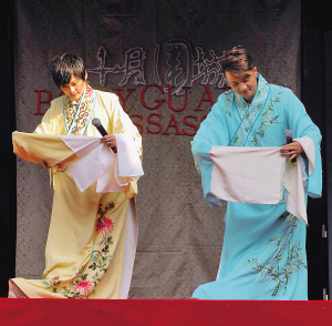 昨天下午,三山會館——上海現(xiàn)存最完整的一處晚清古建筑內(nèi),一位名伶正咿咿呀呀唱著京劇《穆桂英掛帥》,字正腔圓。不過在座諸人無心聽戲,眼光齊齊瞄向臺下正對名伶而立的一人。此人黑西裝、白襯衫、金領(lǐng)結(jié),身為女兒身卻掩不住帥氣的天娛第一號人物——李宇春。