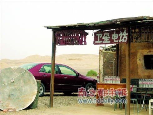 《無人區(qū)》的外景地是一個(gè)加油站兼小賣店,也做汽車修理生意。雖然這個(gè)外景地才搭建不足幾個(gè)月,但在黃沙狂風(fēng)的洗禮下,已經(jīng)活像一個(gè)存在了幾十年的破爛地方。連小賣店本身也是一個(gè)無頂?shù)男“,每?dāng)風(fēng)吹過,無盡的黃沙就朝人的頭頂撒下。