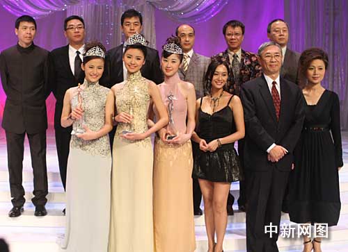 "中華小姐"三甲與評(píng)委合影。