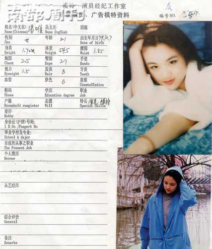 湯唯的前經(jīng)紀(jì)人竺明至今難忘她第一次見(jiàn)到湯唯的那個(gè)下午,19歲的湯唯陪著同學(xué)來(lái)他的文化經(jīng)紀(jì)公司面試,結(jié)果被錄取的卻是“無(wú)心插柳”的湯唯!八臈l件非常不錯(cuò),給人的感覺(jué)很清爽、很陽(yáng)光、很豪爽,見(jiàn)了會(huì)讓人眼前一亮,大大咧咧的,有男孩子個(gè)性。健康、陽(yáng)光、充滿(mǎn)朝氣,這感覺(jué)就像一個(gè)運(yùn)動(dòng)員!