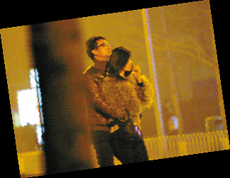 本月24日晚,北京,音樂才子李泉和友人在保利大廈后的餐廳共享大餐后,和一名身穿裘毛大衣的神秘女子一起離開,站在路邊等待出租車時,李泉表現(xiàn)得憐香惜玉,毫不避諱地將這名女子攬在懷中,極為親密曖昧,兩人關系可見非同一般。當這名女子轉(zhuǎn)向鏡頭時,記者認出是MTV全球音樂電視臺主持人朱珠。兩人卿卿我我,沉醉在甜蜜氛圍中,完全忘卻了北京的寒風。之后,兩人乘坐出租車離去,上車后,終于激情難耐,相擁熱吻。
