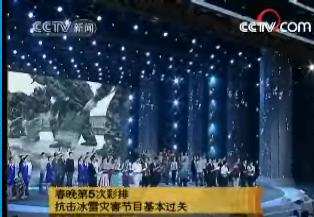新增的兩個(gè)表現(xiàn)抗擊冰雪災(zāi)害精神的節(jié)目是詩(shī)朗誦《溫暖2008》和歌曲《姐妹兄弟》。在中央電視臺(tái)近20位主持人深情朗誦的同時(shí),晚會(huì)大屏幕上再現(xiàn)了全國(guó)各地抗擊冰雪災(zāi)害中的感人畫面。歌曲《姐妹兄弟》唱出的親情、友情、愛(ài)國(guó)情,深深打動(dòng)了彩排現(xiàn)場(chǎng)觀眾的心,也感染著參加演出的節(jié)目主持人們。