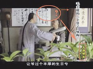 如果說(shuō)《大清御史》是一部無(wú)厘頭作品,時(shí)空可以隨意倒轉(zhuǎn),古往今來(lái)的人和事都自由地在時(shí)空隧道里穿梭,那么,毛澤東的詩(shī)詞懸掛在清代人的居室里,是不妨事的,即使叫三皇五帝捧讀“毛詩(shī)”,也合乎觀眾的審美趣味?墒,《大清御史》偏偏是一部“嚴(yán)肅”的古裝電視劇,這就要求它必須嚴(yán)格地忠實(shí)于歷史”,不得馬虎塞責(zé)、粗制濫造到犯如此低級(jí)錯(cuò)誤。