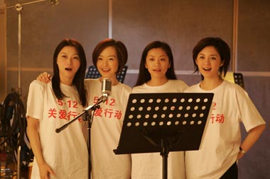 中新網(wǎng)5月16日電 中國(guó)四川省汶川縣遭遇特大地震災(zāi)害,震動(dòng)波及半個(gè)亞洲,數(shù)以萬(wàn)計(jì)民眾罹難,災(zāi)情牽動(dòng)神州大地, 牽動(dòng)全世界關(guān)注的目光。香港演藝人協(xié)會(huì)、香港無(wú)線電視、亞洲電視、香港電臺(tái)、鳳凰衛(wèi)視、新城電臺(tái)六間機(jī)構(gòu)共同組織“一方有難,八方支持”行動(dòng),香港媒體及演藝界人士積極響應(yīng),15日深夜,兩百多位歌、影、視藝人及媒體從業(yè)人員齊聚香港電臺(tái),參與大合唱錄音,為四川地震災(zāi)民祈福、加油、打氣。