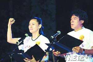 昨晚的演出中,多個(gè)名為“故事講述”的節(jié)目成為主角,它們分別由著名演員或相聲名家演繹。蔣雯麗講述了一個(gè)母親為了保護(hù)自己三四個(gè)月大的孩子,被垮塌的樓房壓死,臨死前還在手機(jī)里寫(xiě)下短信:“孩子,你要活著,你一定要記住,媽媽愛(ài)你”;鞏漢林金珠夫婦則抒發(fā)了對(duì)祖國(guó)的深情:“愛(ài)心永駐汶川。五月的中國(guó),你讓世界驚嘆”;朱時(shí)茂和王思懿則形成組合,朗誦《流淚后我們選擇堅(jiān)強(qiáng)》。此外,相聲名家姜昆則以《我們選擇堅(jiān)強(qiáng)》為題,高聲說(shuō):“中國(guó)不哭,我們不哭!站起來(lái),我們?yōu)槟銚纹鹨黄{(lán)天!彼猩婕叭宋锏墓适氯钦嫒苏媸拢@些故事讓現(xiàn)場(chǎng)的觀眾非常感動(dòng)。