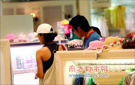 兩人在商場(chǎng)里悠閑漫步,先后去了三四家嬰兒用品柜臺(tái),挑選些小衣服,小奶瓶等嬰兒用品。夫妻二人在選購(gòu)過(guò)程中不時(shí)交流,挑選得十分仔細(xì)。雖然周圍的營(yíng)業(yè)員都在交頭接耳議論,似乎已認(rèn)出了陸毅和鮑蕾,但夫妻倆并未在意,只顧挑自己的東西。(小魚)