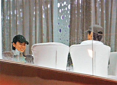 坐在窗邊的林熙蕾,和吳彥祖相談甚歡。