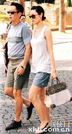 這是許公子比較少有的短打LOOK,不過向來比較正統(tǒng)的他,還是選擇了一雙矮幫的皮鞋來搭配短褲。不過這樣穿也暴露了他有些微凸的小腹——到底是年紀(jì)一把了?傮w來說,兩個(gè)人的搭配感覺都很夏日很度假。