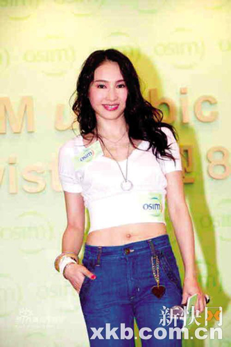 3月19日,黎姿與奧運(yùn)金牌得主李麗珊等出席活動,粉紅短上衣加牛仔褲,看起來很運(yùn)動、很青春。