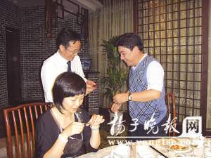 為了對(duì)在南京的聯(lián)合國副秘書長(zhǎng)進(jìn)行高端訪問,央視“高端主持人” 水均益前晚突然空降南京,天黑了才下飛機(jī),在幾位朋友的盛邀下,直奔南京頗負(fù)盛名的吃龍蝦酒店星湖飯店,現(xiàn)學(xué)現(xiàn)考,獲得“三段證”,有趣的是一同隨來的愛妻、央視五套專跑臺(tái)球大師杯的著名記者楊迪,吃蝦技藝超過老公,得了“六段證”。