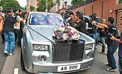 一對(duì)新人的勞斯萊斯約值550萬(wàn)元,來(lái)頭不小。