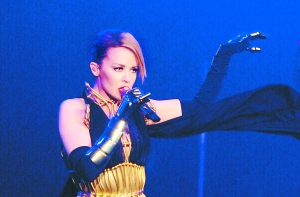 昨晚,凱莉·米洛的演唱會(huì)制作水準(zhǔn)要遜色于她的上一次巡演。那次巡演正值她人氣的最高值,現(xiàn)場(chǎng)更酷、更炫。而昨晚,舞臺(tái)顯得十分簡(jiǎn)單,燈光也沒(méi)有太花哨,大部分效果來(lái)自強(qiáng)大的音響以及巨大LED上呈現(xiàn)的電子三維畫面的沖擊力,這兩樣對(duì)于電子舞演出是最為重要的。