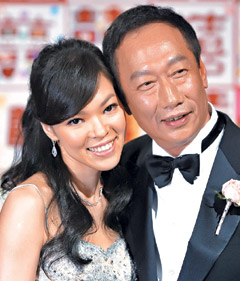 郭臺銘(右)和曾馨瑩婚后將有小寶貝誕生。